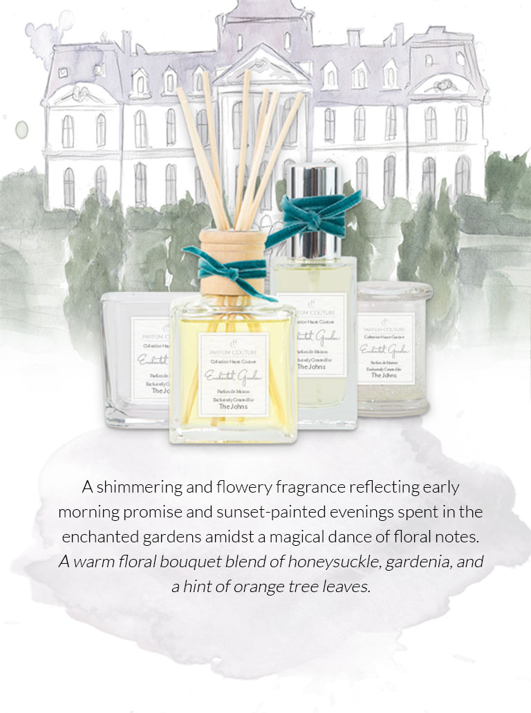 A shimmering and flowery fragrance reflecting early morning promise and sunset-painted evenings spent in the enchanted gardens amidst a magical dance of floral notes.